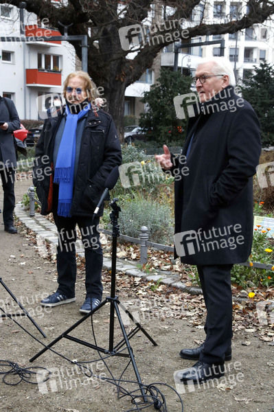 Frank Zander und Bundespräsident Frank-Walter Steinmeier beim Pressegespräch nach dem Verteilen von Essen und Geschenken aus dem Food Truck an Obdachlose und Bedürftige. Berlin, 16.12.2020