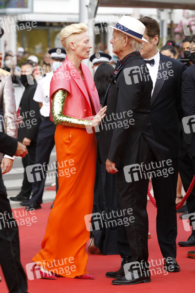 Tilda Swinton und Bill Murray bei der Premiere des Kinofilms 'The French Dispatch' auf dem Festival de Cannes 2021 / 74. Internationale Filmfestspiele von Cannes im Palais des Festivals. Cannes, 12.07.2021