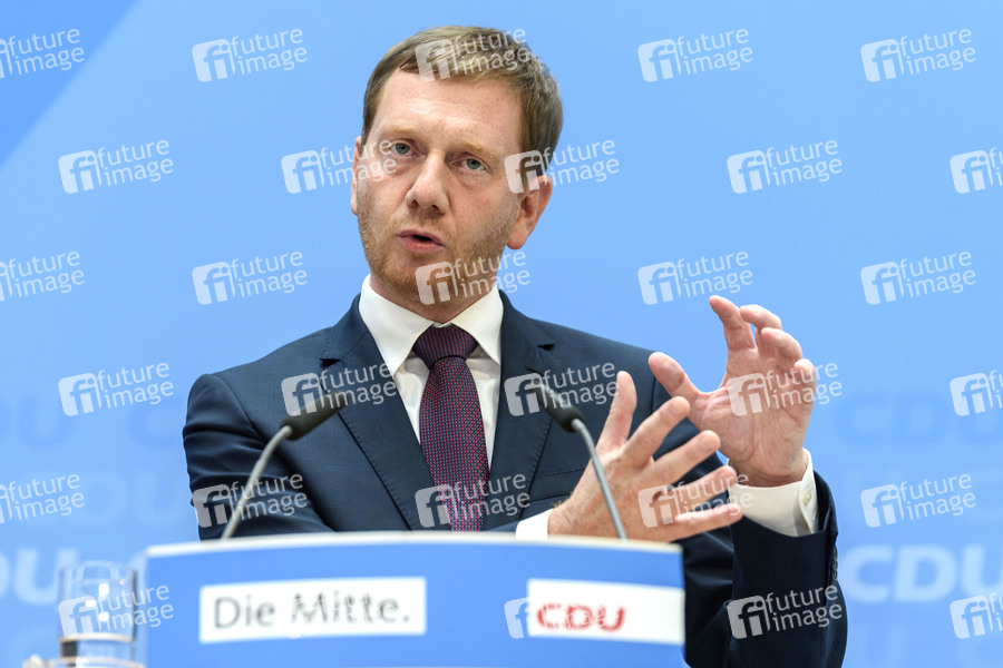 Michael Kretschmer bei einer Pressekonferenz der CDU-Spitzenkandidaten zu den Landtagswahlen in Brandenburg und Sachsen im Konrad-Adenauer-Haus. Berlin, 02.09.2019