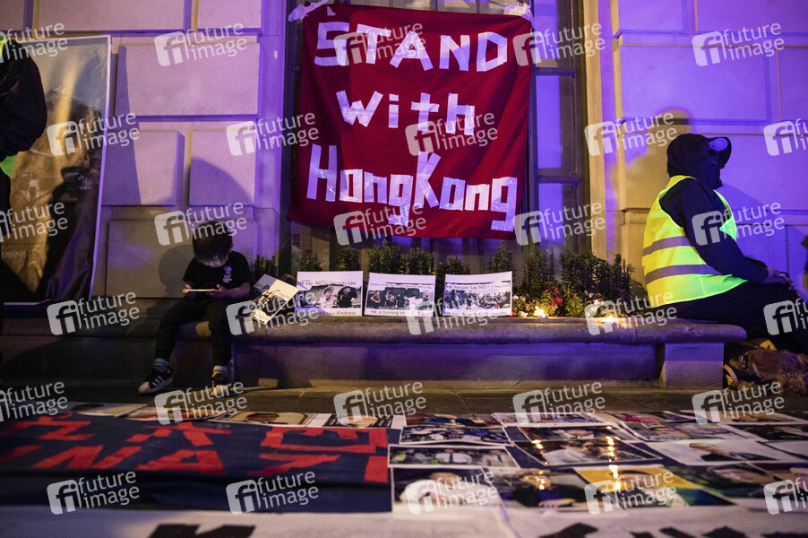 Mahnwache für die Opfer des Tian’anmen-Massakers vor der chinesischen Botschaft. Am 03. und 04. Juni 1989 wurde auf dem Tian’anmen-Platz in Peking die ursprünglich studentische Demokratiebewegung vom chinesischen Militär gewaltsam niedergeschlagen. Auf dem Platz selbst starben dabei keine Menschen, in anderen Teilen der Stadt verloren nach Angaben von Amnesty International zwischen mehreren hundert und mehreren tausend Menschen ihr Leben. London, 04.06.2021