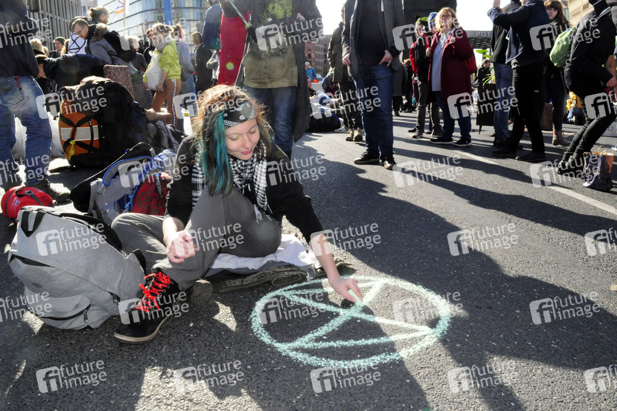 Aktivisten der Klimabewegung 'Extinction Rebellion' blockieren den Potsdamer Platz. Berlin, 07.10.2019