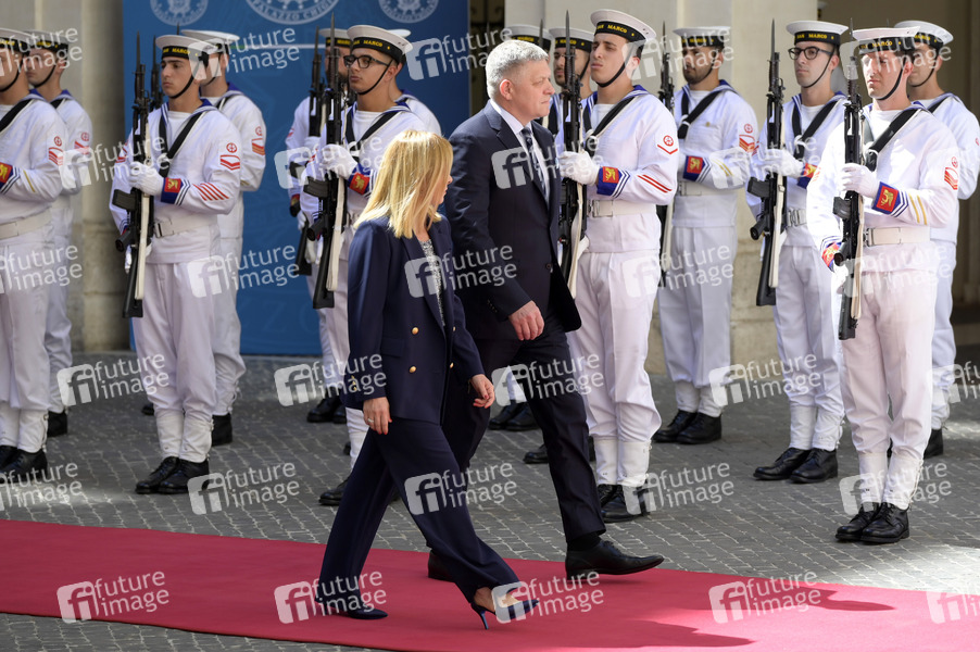Politik, Staatsbesuch, Staatsvisite, Gespräch, bilaterale Gespräche, Treffen, Diplomatie, Staatsgast, Politiker, Ministerpräsident der Slowakei, SMER - sociálna demokracia, Politikerin, Ministerpräsidentin von Italien, Fratelli d'Italia, FdI