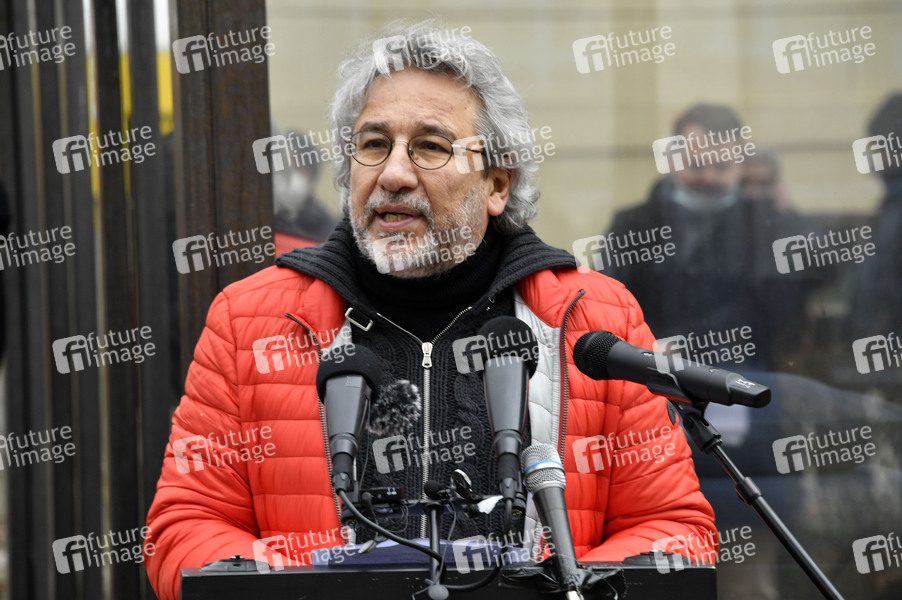 Can Dündar bei der Pressekonferenz des KulturForum TürkeiDeutschland zur Solidarität mit den gesamten demokratischen Kräften in der Türkei, insbesondere mit inhaftierten Schriftsteller*innen, Künstler*innen, Journalist*innen, Gewerkschafter*innen und Politiker*innen vor dem Maxim Gorki Theater. Berlin, 23.03.2021