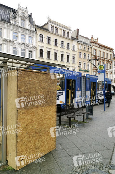 ÖPNV-Haltestelle, Demianiplatz, ÖPNV, Haltestelle, Maßnahme, Anbringung einer Schutzverplankung, Sichtschutz, Schutzscheiben, Schutz, Pyrotechnik, Feuerwerkskörper, Vandalismus, Jahreswechsel, Silvester, Görlitzer Verkehrsbetriebe, GVB, Feuerwerksverbotszone, Straßenbahnen, Symbolfoto, Symbolbild