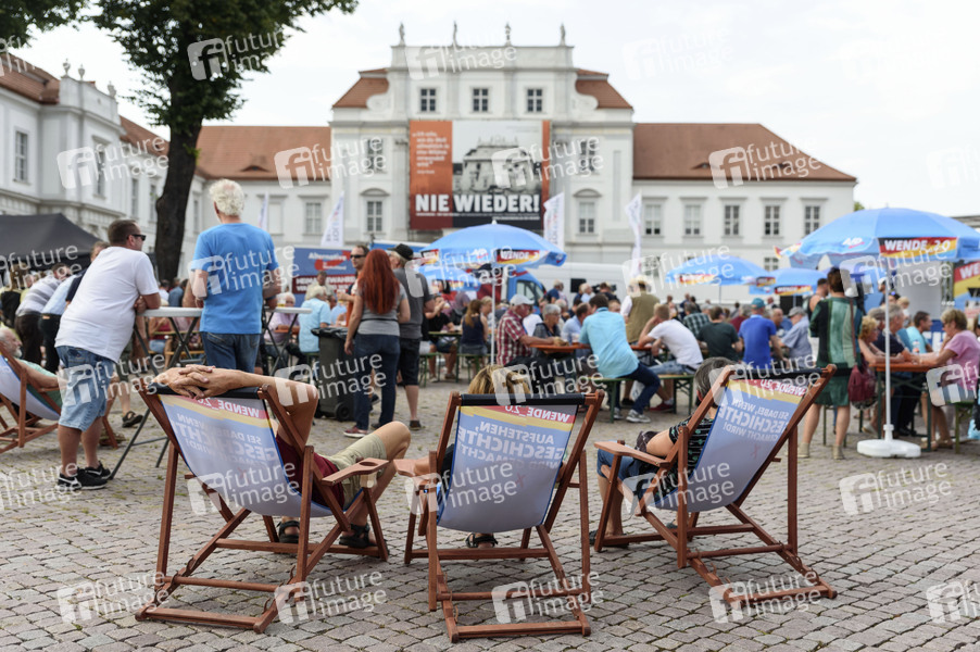 Publikum und Parteianhänger auf dem Volksfest der AfD zur Landtagswahl in Brandenburg auf dem Schloßplatz. Oranienburg, 16.08.2019