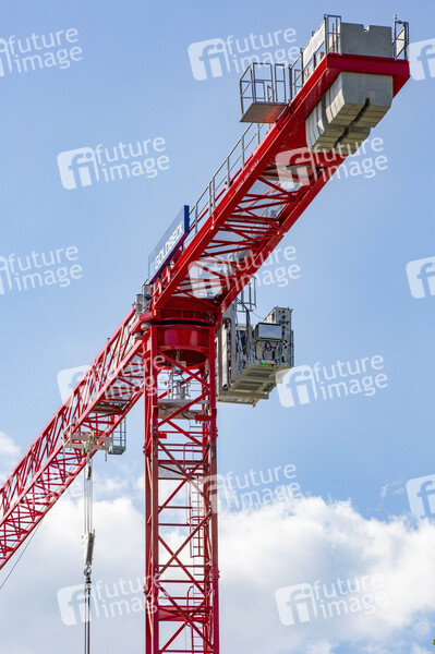 Kran, Turmkran, Turmkräne, Hebemaschine, Turmdrehkran, Obendreherkran, Krantechnik, Kranvermietung, Kranzubehör, Baukanhandel, Krananstrich, Kranfarbe, Baustelle, Hochbau, Hochbaukrane, Tiefbau, Fachwerkträger, Drehkranz, Vorderer Auslager, hinterer Ausleger, Katzausleger, Nadelausleger, Turmkrankonstruktion, Wolffkran, Baumaschinen, Baumaschienenhersteller, Kranhersteller, Turmspitze, Ballastgewicht, Gegenausleger, Traglast, Widerlager, Aufstellfläche, Bodenplatte, Betongewichte, Stahlrohrkonstruktion, Lastmoment, Krankomponenten, Fundamentanker, Turmabspannung, Innenkletterleiter, Kranfahrer, Kranführer, Krankanzel, Steuerkanzel, Wirtschaft, Bau, Symbolbild, Symbolfoto