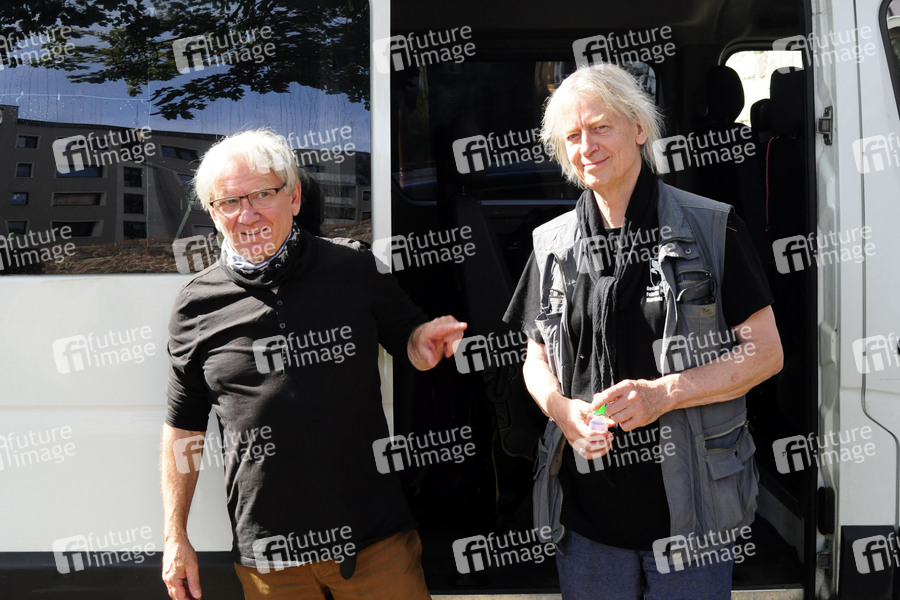 Funky K. Götzner und Kai Sichtermann von Ton Steine Scherben bei der Ankunft zum Konzert im Moritzburggraben. Halle/Saale, 01.08.2020