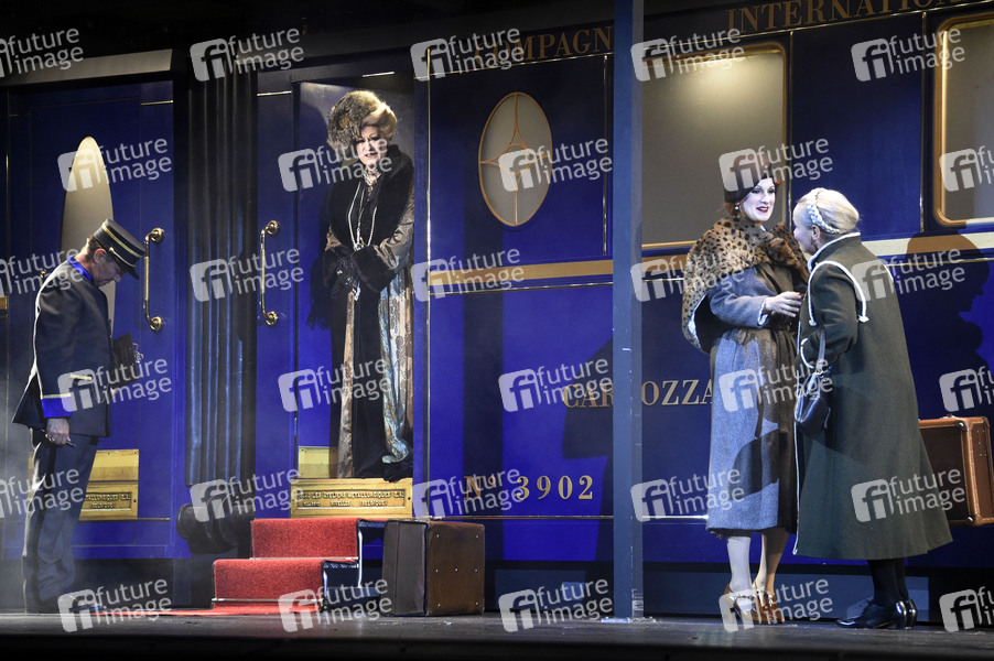 Max Gertsch, Andreja Schneider, Nadine Schori und Wenka von Mikulicz bei der Fotoprobe zum Theaterstück 'Mord im Orientexpress' in der Komödie am Kurfürstendamm im Schiller Theater. Berlin, 20.07.2021