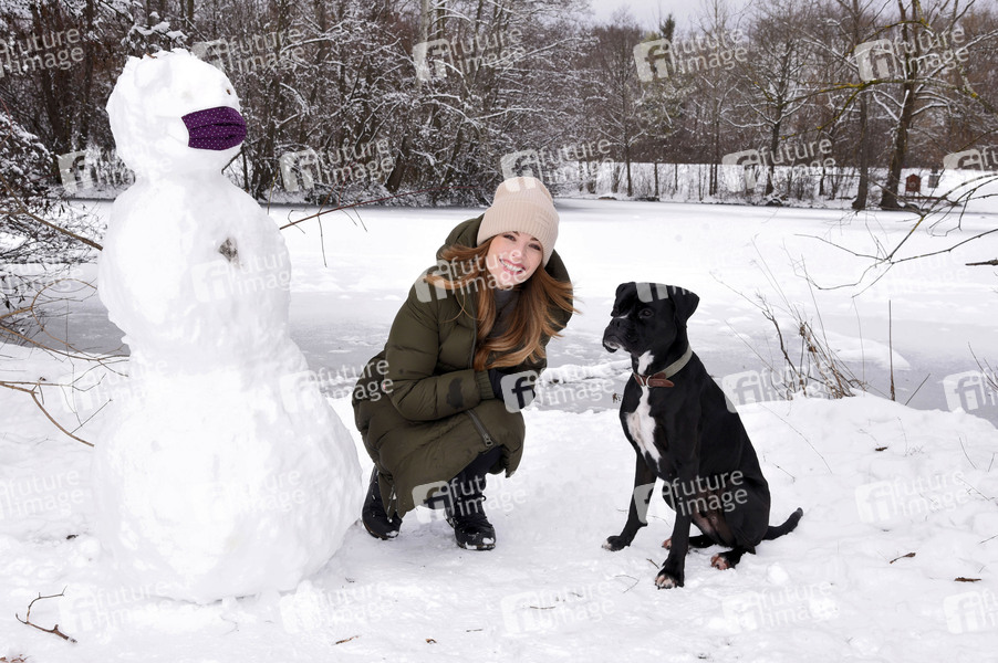 Lena Meckel mit ihrem Hund Ludwig beim Winterspaziergang im Ostpark. München, 07.01.2021