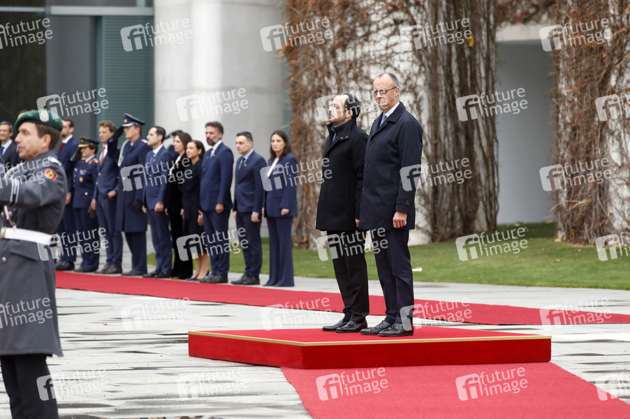 Nikos Christodoulides und Friedrich Merz beim Empfang des Präsidenten der Republik Zypern mit militärischen Ehren zu einem gemeinsamen Gespräch mit anschließendem Pressestatement im Bundeskanzleramt. Berlin, 14.11.2025