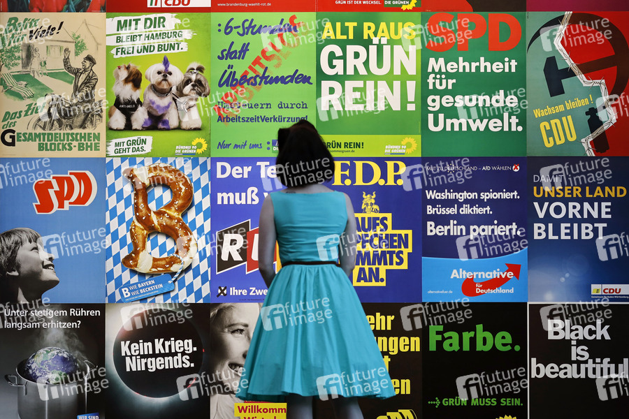 Ausstellung, Wahlen, Bundestagswahl, Landtagswahl, Kommunalwahl, Wahlen 2021, Wahlslogans, Wahlslogan, Wahlplakat, Wahlplakate, Wahlkampf, Wahlversprechen, Politik, Politiker, Wahlwerbung, Wahlen, Wählen, Demokratie, BRD, Bundesrepublik Deutschland, Geschichte, Ästhetik, Kunst, Politiker, Wählerbeeinflussung, Persuasion