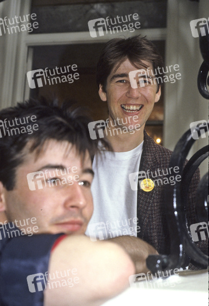 Gary Daly und Eddie Lundon von China Crisis bei einem Fototermin vor einem Hotel. London, 13.06.1985