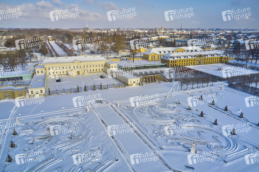 Luftaufnahme, Großer Garten, Barockgarten, Sehenswürdighkeit, Sightseeing, Tourismus, Veranstaltungsort, Berggarten, Winter, Schnee