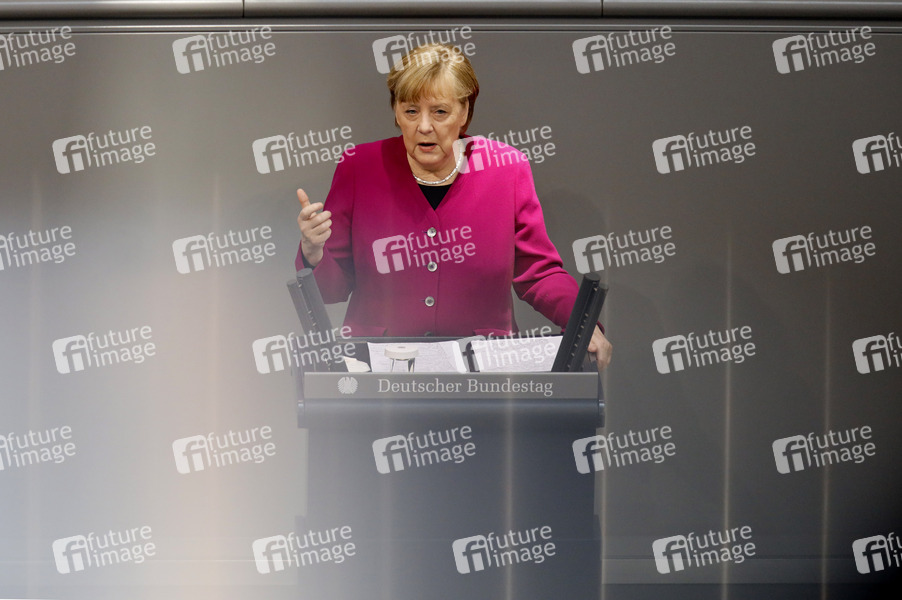 Angela Merkel in der 218. Sitzung des Deutschen Bundestages im Reichstagsgebäude. Berlin, 25.03.2021