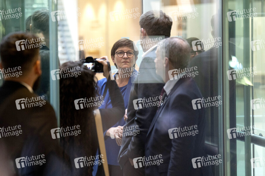 Saskia Esken beim gemeinsamen Auftaktstatement der Parteivorsitzenden von CDU, CSU und SPD zur Bildung einer neuen Regierungskoalition im Willy-Brandt-Haus. Berlin, 28.03.2025