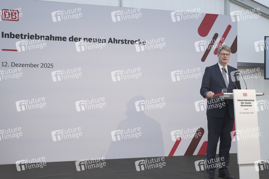 Patrick Schnieder bei der Inbetriebnahme der neuen Ahrtalbahn mit Sonderfahrt von Dernau nach Altenahr. Altenahr, 12.12.2025