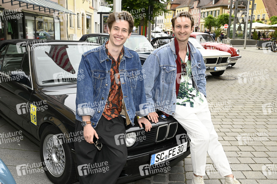 Adrian Bräunig und Jonathan Gertis bei der 4. Sternstunden Benefiz Oldtimer Rallye 2022 für geflüchtete Kinder aus der Ukraine (Spendensumme über 12.000 Euro) am Start & Ziel auf dem Kornhausplatz. Spalt, 29.05.2022
