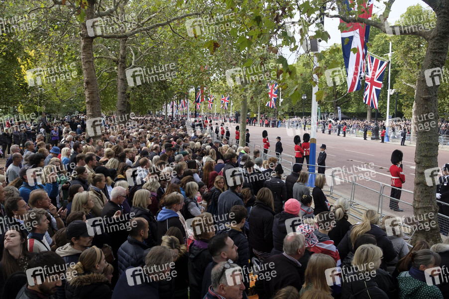 Staatsbegräbnis, Prozession, Trauer, Anteilnahme, Tod von Königin Elisabeth II., Kondolenz, Kondolation, Beileidsbekundung, Monarchin, Abschied, Operation London Bridge, Beerdigung, Beisetzung
