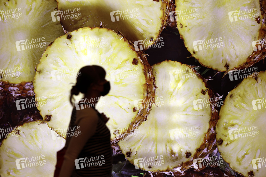 Ananas, Anuga, Food, Ernährung, Essen, Trinken, Nahrung, Nahrungsmittel, Food-Messe, Lebensmittel-Messe, Lebensmittelmesse, FoodTech, Fachmesse, Innovationen, Nachhaltigkeit, pflanzliche Lebensmittel, Food-Trends, Laborfleisch, Flexitarismus, Tierwohl, neue Produkte, Anuga-Logo, Fahnen, Anuga-Fahnen, Symbolfoto, Symbolbild