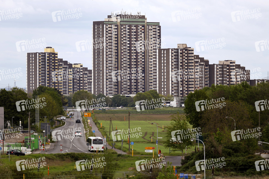 Die Schwerpunktimpfung in Kölner Stadtbezirken mit hoher Inzidenz laufen vorerst aus. Der Grund: Es fehlt Impfstoff. Im Bild eine Wohnanlage am Kölnberg im Stadtteil Meschenich. In dem sozialen Brennpunkt wurde Freitag und Samstag eine Sonderimpfung angesetzt. (Themenbild, Symbolbild) Köln, 10.05.2021
