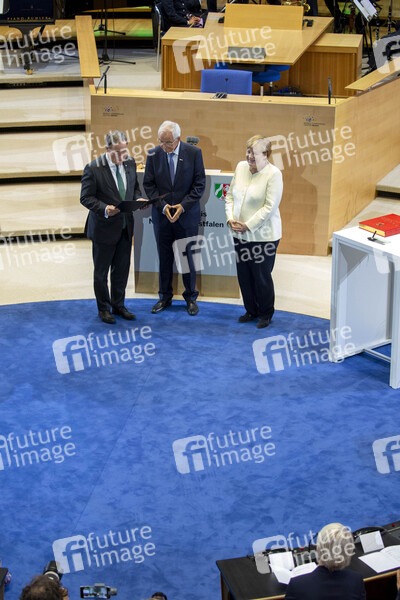 Armin Laschet, Klaus Töpfer und Angela Merkel bei der Verleihung des Staatspreises des Landes Nordrhein-Westfalen 2019 an Klaus Töpfer im WCCB. Bonn, 16.09.2019