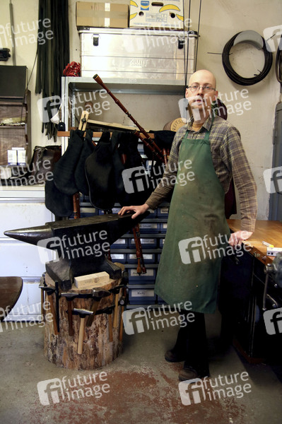 Aussterbende Zunft, Werkstatt, Instrumentenbau, Dudelsack, Sackpfeife, Holzblasinstrument, Sessionprotz, Schäferpfeife, Spielpfeife, Säckpipa, Säckpipor, Dudelsackmanufaktur, Handwerk, Werkzeuge, Werkzeuge, Herstellung, Hersteller, Innung, Zunft, Zünfte, Handwerkskunst, Handarbeit, Musik, Musikinstrument, Pfeife, Pfeifen, Kunsthandwerk, Symbolfoto, Symbolbild