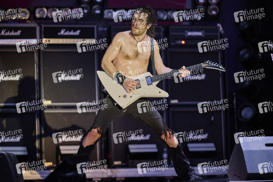 Joel O'Keeffe von Airbourne live auf dem Summerside Festival 2025 beim Flugplatz. Grenchen, 28.06.2025