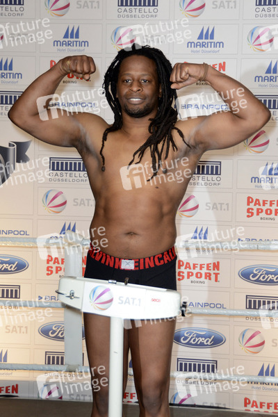 Mola Adebisi beim Wiegen zum TV-Kampfevent 'Das große SAT.1 Promiboxen' im Sportgarde Box-Club. Düsseldorf, 06.03.2013