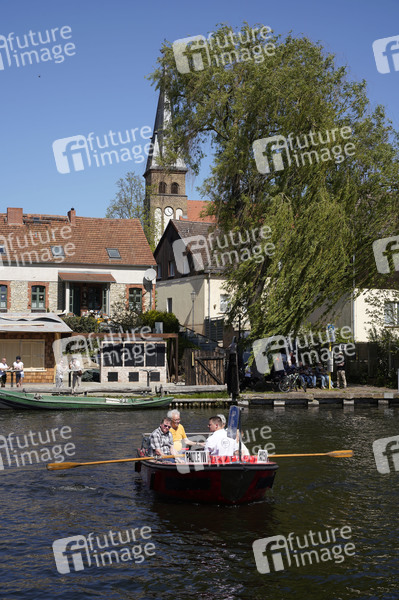 Die Ruderfähre F24 Paule III mit dem Fährmann Marcel Franke setzt seit dem 1. Mai 2024 wieder zwischen der Haltestelle Spreewiesen und Kruggasse über. Rahnsdorf, 01.05.2024