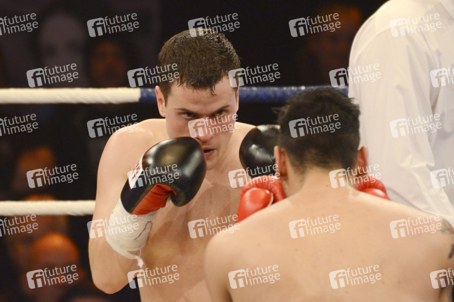 Rocco Stark vs. B-Tight Davis bei der Fernsehshow 'Das große Sat.1 Promiboxen 2013' im Castello. Düsseldorf, 08.03.2013