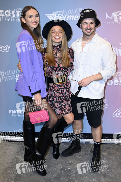 Anna Wilken, Lola Weippert und Nicolas Puschmann bei der Tom Tailor Fashion Show auf der About You Fashion Week im Kraftwerk Berlin. Berlin, 15.09.2021