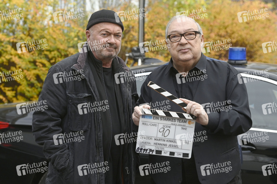 Arnfried Lerche und Florian Martens beim Fototermin zur 90. Folge der ZDF Krimiserie 'Ein starkes Team - Verdammt lang her' an der Landsberger Allee. Berlin, 09.11.2021