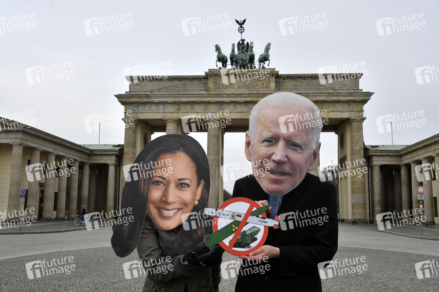 Atomwaffenreduktionsvertrag, Begrenzung strategischer Offensivwaffen, Abrüstung, Atomwaffen, Atomwaffenvertrag, Abrüstungsvertrag, Rüstungskontrollvertrag, New Start-Vertrag, nukleare Abrüstung, Aktion, Demonstration, ICAN Deutschland, IPPNW Deutschland, DFG-VK, International Physicians for the Prevention of Nuclear War, Internationale Ärzte für die Verhütung des Atomkrieges, Kamala Harris Maske