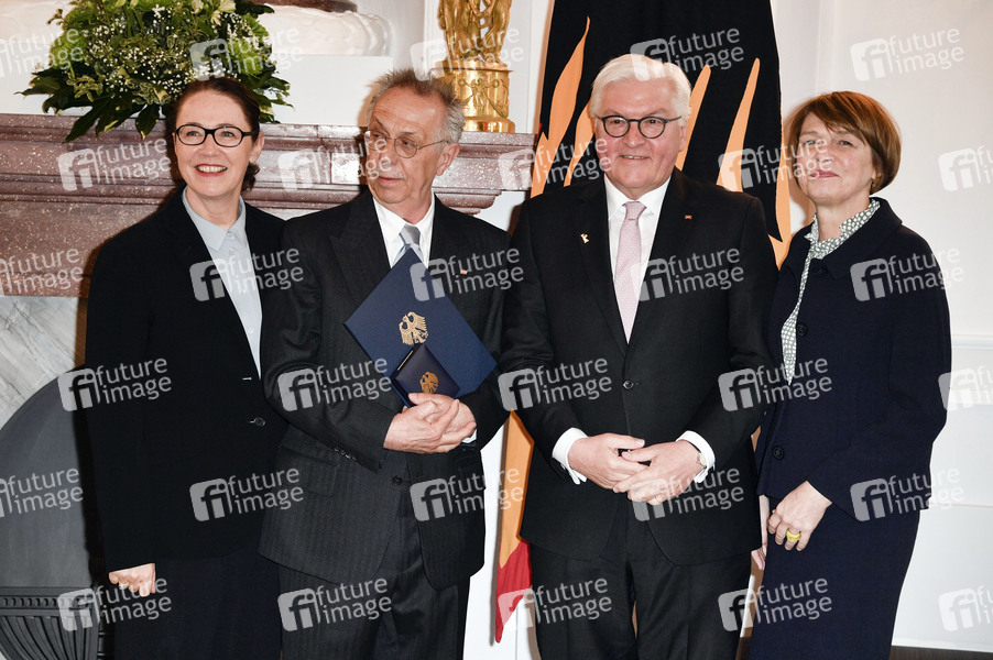 Wilma Harzenetter, Dieter Kosslick und Frank-Walter Steinmeier mit Ehefrau Elke Büdenbender bei der Verleihung des Verdienstordens der Bundesrepublik Deutschland an Dieter Kosslick im Schloss Bellevue. Berlin, 10.04.2019