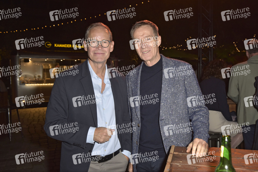Michael Müller mit Gast beim VBKI-Sommerfest 2025 am Gasometer Schöneberg auf dem EUREF-Campus. Berlin, 12.09.2025