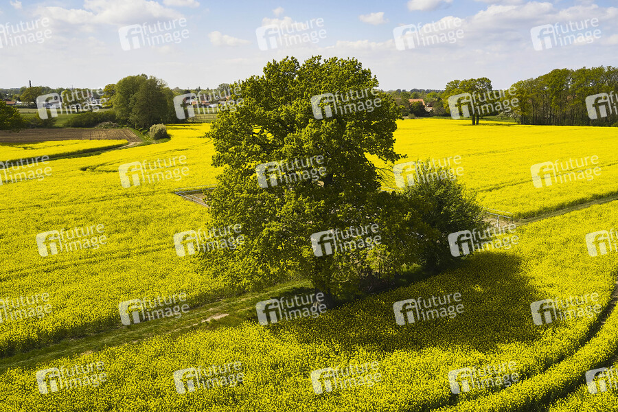 Luftbild, Luftaufnahme, Drohnenaufnahme, Feld, Natur, Raps, Pflanze, Kreuzblütengewächs, Nutzpflanze, Rapsöl, Lewat, Landwirtschaft, Baum, Symbolfoto, Symbolbild