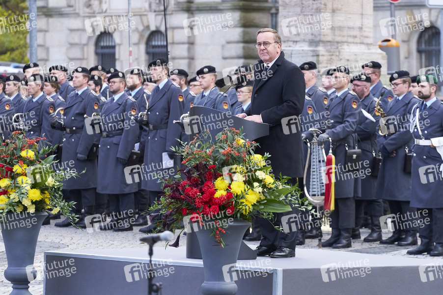 Boris Pistorius beim Feierlichen Gelöbnis zum Gründungstag der Bundeswehr auf dem Platz der Menschenrechte vor dem Neuen Rathaus. Hannover, 12.11.2024