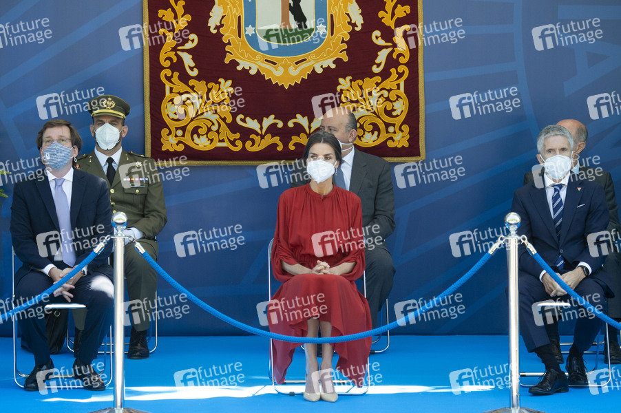 Jose Luis Martinez-Almeida, Königin Letizia von Spanien und Fernando Grande-Marlaska bei der Feier 'San Juan Bautista', dem Schutzpatron der Stadtpolizei, das mit dem 50. Jahrestag des Eintritts von Frauen in das Polizeikorps der Stadt Madrid zusammenfällt. Madrid, 24.06.2021