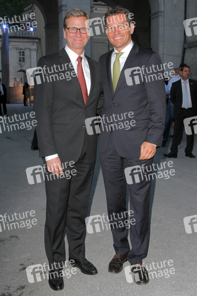 Guido Westerwelle mit Ehemann Michael Mronz auf dem Weg zur 'Jedermann' Vorstellung im Rahmen der Salzburger Festspiele. Salzburg, 26.07.2013