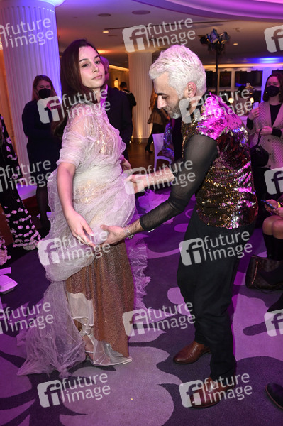 Designer Wladimir Arutti mit Model bei der Eröffnung der Frankfurt Fashion Lounge mit der Opening Show by Wladimir Arutti im Rahmen der Frankfurt Fashion Week Herbst/Winter 2022 im Sofitel Frankfurt Opera. Frankfurt, 18.01.2022