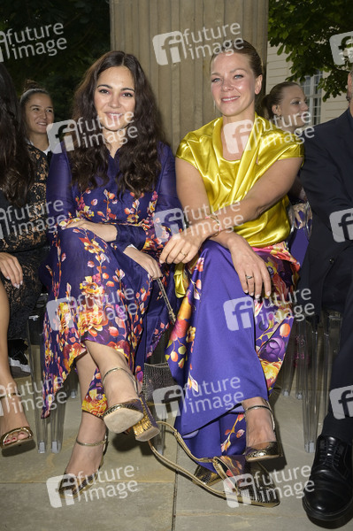 Nilam Farooq und Jessica Schwarz bei der Marc Cain Fashion Show 'Pure Radiance - Frühjahr/Sommer 2025' auf der Berlin Fashion Week S/S 2025 in der Kolonnade mit Triumphtor am Neuen Palais. Potsdam, 02.07.2024
