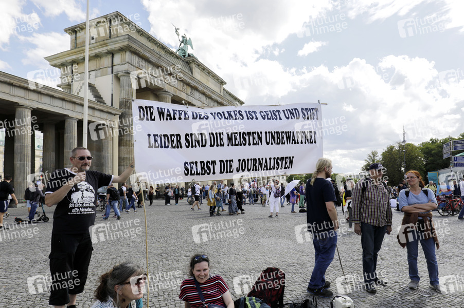 Demonstranten verschiedener Gruppierungen wie etwa der Initiative Querdenken 711 protestierten mit einer Großdemonstration gegen die bestehenden Maßnahmen zur Eindämmung der Corona-Pandemie. Wegen Nichteinhaltung der polizeilichen Auflagen wurde die Demonstration durch die Polizei beendet. Berlin, 29.08.2020
