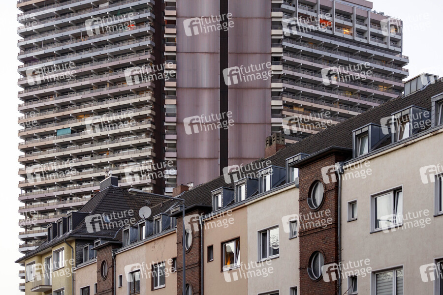 Das Kölner Unicenter ragt über den Stadtteil Sülz. Die fast schon explodierenden Immobilienpreise in der Region um Köln und Bonn lassen die Kreditnachfrage bei Instituten wie der Kreissparkasse Köln sprunghaft ansteigen. Unterdessen tobt in Berlin der Kampf um Wohnraum in Zeiten von Corona: Eine Initiative sammelt Unterschriften, die Gesellschaft Deutsche Wohnen zu enteignen. (Themenbild, Symbolbild) Köln, 05.03.2021