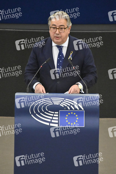 Juan Ignacio Zoido Alvarez bei einer Plenartagung zur Zusammenarbeit und Gemeinsamkeiten des Putin-Regimes und rechtsextremer sowie separatistischer Bewegungen in Europa im Plenarsaal des Europäischen Parlaments. Straßburg, 06.04.2022