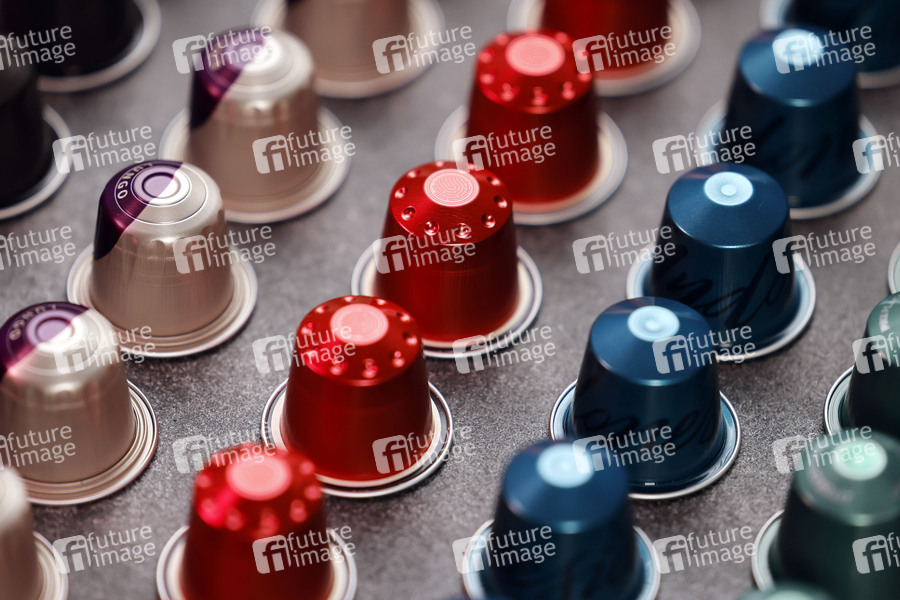 Kaffeekapseln verschiedener Hersteller auf einem Tisch. Die Organisation Foodwatch kritisiert Kaffeekapseln immer wieder als 'riesige Ressourcenverschwendung'. Zuletzt ließ man die Werbelüge eines Herstellers abmahnen, dessen Kaffeekapseln seien kompostierbar. (Themenbild, Symbolbild) 25.01.2022