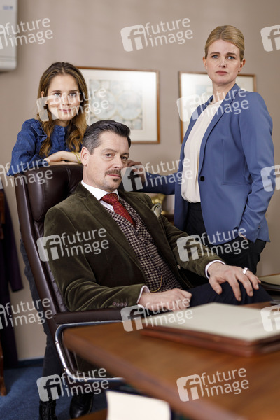Bianca Nawrath, Fritz Karl und Mira Bartuschek beim Fototermin am Set der ARD TV-Serie 'Falk' in einem Gebäude in der Linnicherstraße. Köln, 26.02.2020