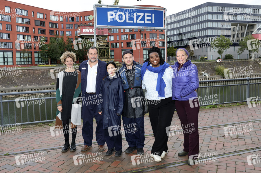 Karen Dahmen, Markus John, Yasemin Cetinkaya, Niklas Osterloh, Romy Vreden und Karen Böhme beim Fototermin am Set der ARD TV-Serie 'WaPo Duisburg' im Duisburger Innenhafen. Duisburg, 20.09.2022
