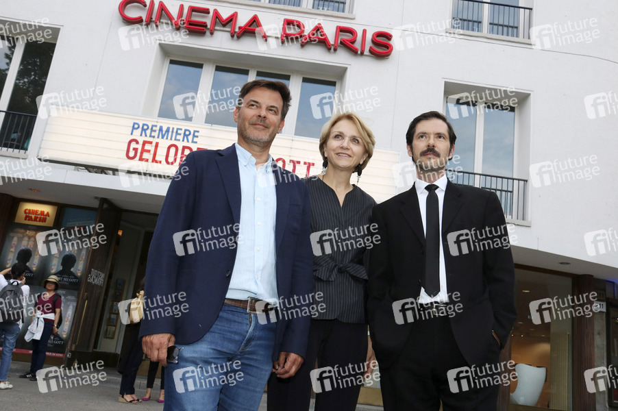 Francois Ozon, Anne-Marie Descotes und Melvil Poupaud bei der Premiere des Kinofilms 'Gelobt sei Gott / Grace à Dieu' im Cinema Paris. Berlin, 18.07.2019