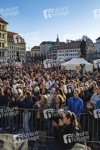 Demonstration unter dem Motto 'Wir sind die Brandmauer' gegen die AfD und den Rechtsruck auf dem Neumarkt. Dresden, 25.02.2024