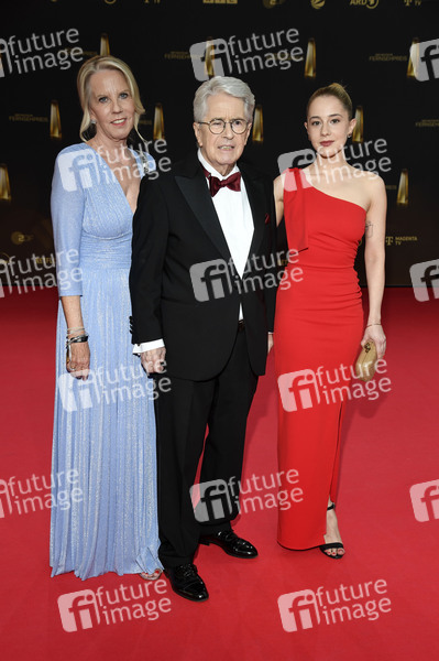 Frank Elstner mit Ehefrau Britta Gessler und Tochter Enya Elstner bei der Verleihung des Deutschen Fernsehpreises 2025 in den MMC Studios. Köln, 10.09.2025